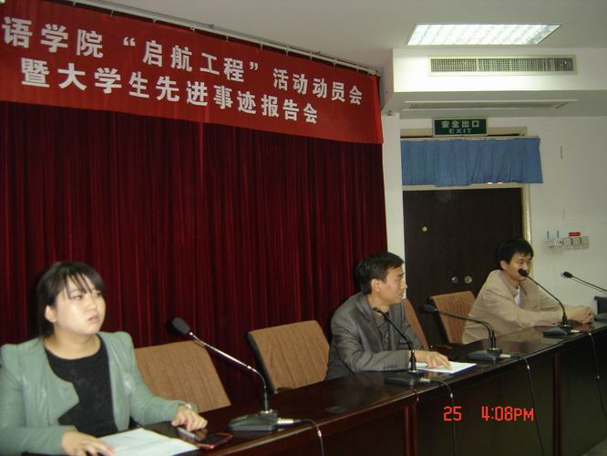 动员会后,获得本学年国家奖学金的刘鹏征同学、国家励志奖学金的邢红锦同学和社会实践先进个人朱瑞娇、赵梦梦、刘奥美同学分别发言,就自己的大学成长和取得的成绩,学习方法和社会实践情况做了介绍,他们以自己的亲身经历和感受为学弟学妹们上了生动的一课。