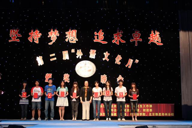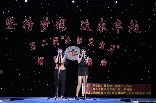 5月14日晚,中原工学院第二届外文歌曲大赛决赛暨“外语文化月”颁奖晚会在南区二号组团楼演播大厅隆重举行。校党委副书记刘志刚,副院长杜建慧,副院长曹健,教务处处长李惠杰,研究生工作部长海松梅,学生处、就业处副处长岳瑞凤,校团委副书记海然、国际教育学院院长兼党总支书记刘跃军、副书记方敬永,3003新葡官方网站副书记李向东及各学院300余名师生学生参加了本次活动。3003新葡官方网站院长郭万群、副院长刘卫红、外教管理部主任郝玉娟、外教Leny和Loida担任了本次比赛的评委。实用性英语大赛合作方北京雅思郑州分校校长杨朔也应邀出席。