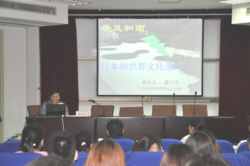 2012年6月1日下午,在中原工学院南校区4号楼311学术报告厅,新葡官网外请专家浙江工商大学日本语言文化学院郭万平博士为3003新葡官方网站师生做了题为“唐风和雨:走近日本的世界文化遗产”专题学术报告。3003新葡官方网站师生100多人聆听了报告。报告由3003新葡官方网站副院长杨道云主持。