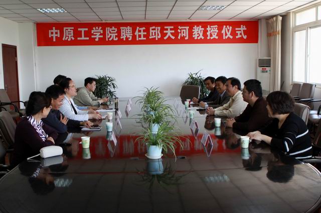 仪式上,杜建慧副院长致欢迎辞,并代表学校为邱天河教授颁发聘书、佩戴校徽。邱天河教授发表感言并与大家座谈交流。