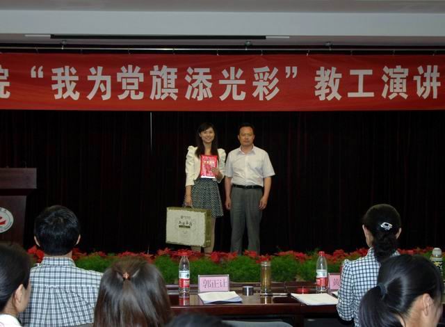 张丽君在“我为党旗添光彩”教工演讲比赛中获得一等奖