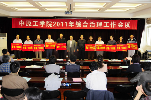 5月23日下午,新葡官网2011年综合治理工作会议在南区行政楼501会议室召开。学校党委副书记郭正让、副院长谷景立出席会议,各部门综合治理责任人参加会议。会议由保卫处处长吴翔胜主持。 谷景立副院长宣读了对2010年综合治理先进集体和先进个人进行表彰的决定,出席会议的校领导为先进集体颁奖。新葡官网获得综合治理先进集体,办公室主任黎瑛获得综合治理先进个人。