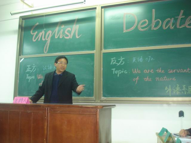 4月10晚6:30,外语系英语辩论赛决赛在3号楼221准时拉开帷幕.外语系副主任张智中和杨为明、陈君、武永、李向东等老师参加了比赛并担任评委。