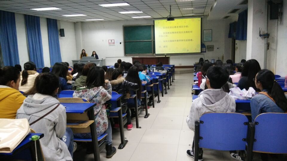 2015年3月31日晚6点,3003新葡官方网站举办赴外汉语教师志愿者经验交流会,新葡官网领导、学工办全体老师及学院3个年级的学生参加了此次交流会。