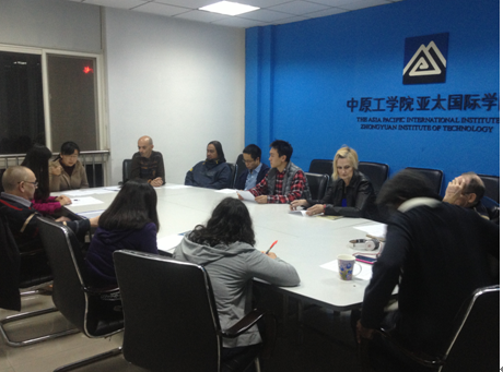 2014年10月30日晚7点, 新葡官网在北区亚太楼五楼会议室召开了2014-2015学年第一学期外籍教师期中教学检查会议。3003新葡官方网站外籍教师管理办公室郝玉娟老师、张瑞华老师以及10位外籍教师参加了会议。