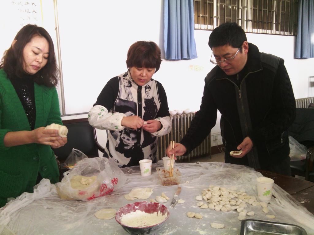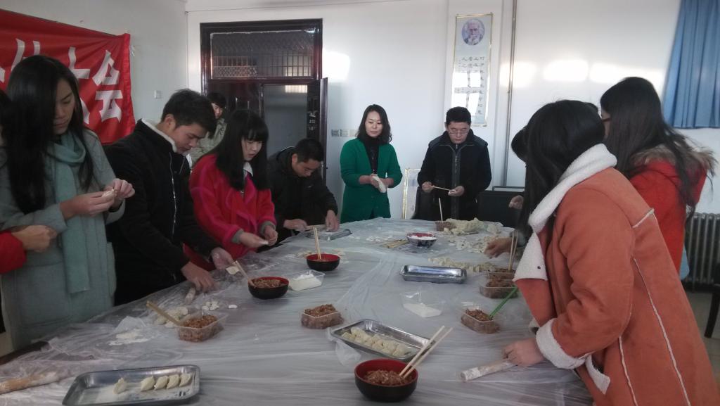 冬至吃饺子是我国北方地区的一个传统习俗,来自大江南北的老师和同学们都大显身手,分工明确,揉面、擀皮、包饺子、煮饺子有条不紊的进行着......伴随着一曲又一曲的《好日子》、《小苹果》、《常回家看看》也为这丰盛的饺子宴添进了一味特别的调料。
