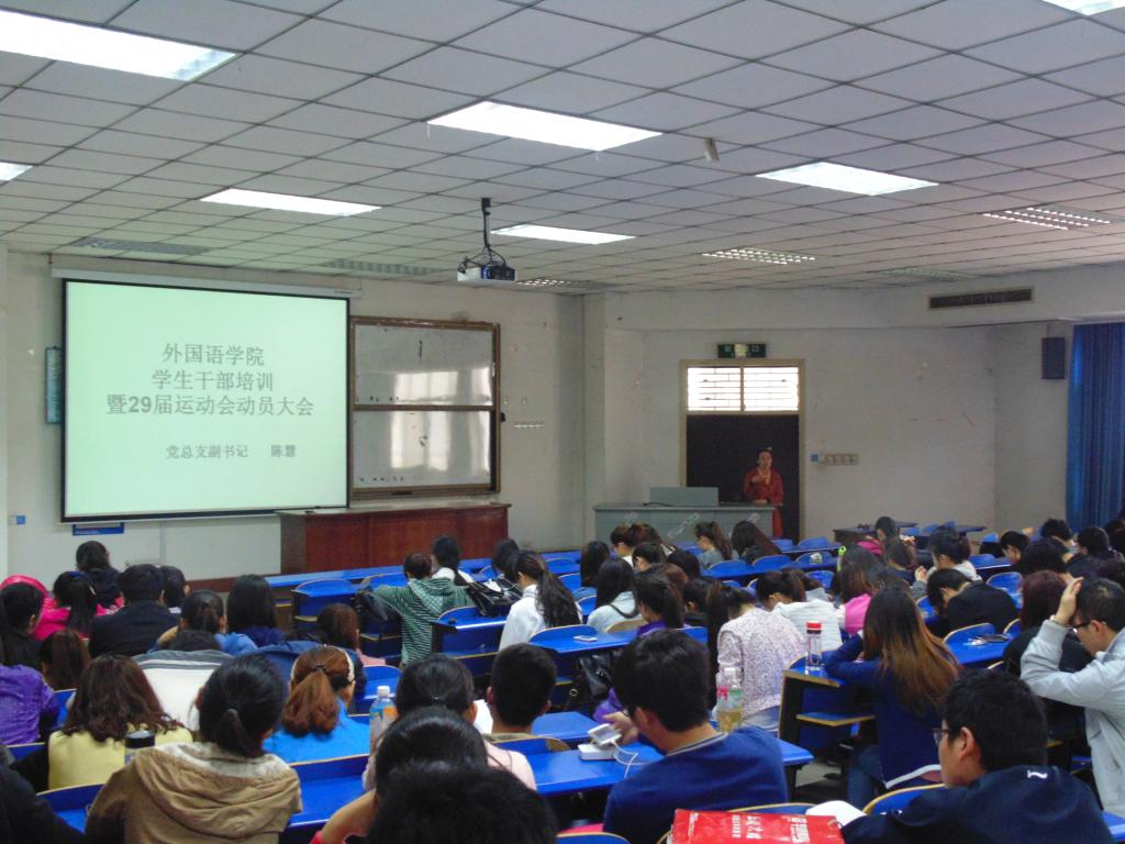四月份,新葡官网召开了3003新葡官方网站学生干部培训暨第二十九届运动会动员大会。大会由团总支副书记张振华主持,党总支副书记陈慧主讲。