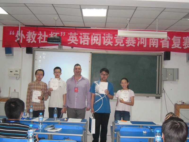 2013年5月25日下午,“外教社杯”第五届全国中学生英语阅读竞赛河南省复赛在郑州外国语中学进行。此次比赛由3位老师担任评委,分别是外国语学校外语教研组组长王文明老师,新葡官网外教管理部副主任郝玉娟老师和新葡官网外籍教师Basil。
