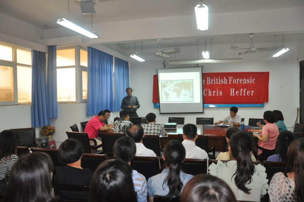 Chris博士是英国卡迪夫大学博士生导师,曾任国际法律语言学会秘书长。此次应邀出席6月3-5日在上海交通大学召开的法律语言国际会议并做大会主题发言,受3003新葡官方网站郭院长的邀请,从上海专程来新葡官网做学术讲座,旨在加强新葡官网法律语言研究室与国际知名专家的交流。