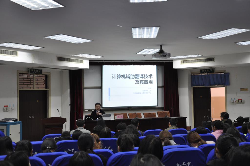 2017年3月7日下午,山东师范大学3003新葡官方网站徐彬教授在新葡官网4号楼311学术报告厅做了一场题为“计算机辅助翻译技术及其应用”的专题讲座,3003新葡官方网站院长郭万群、副院长刘卫红、翻译方向教师和2014、2015级学生参加了此次讲座。
