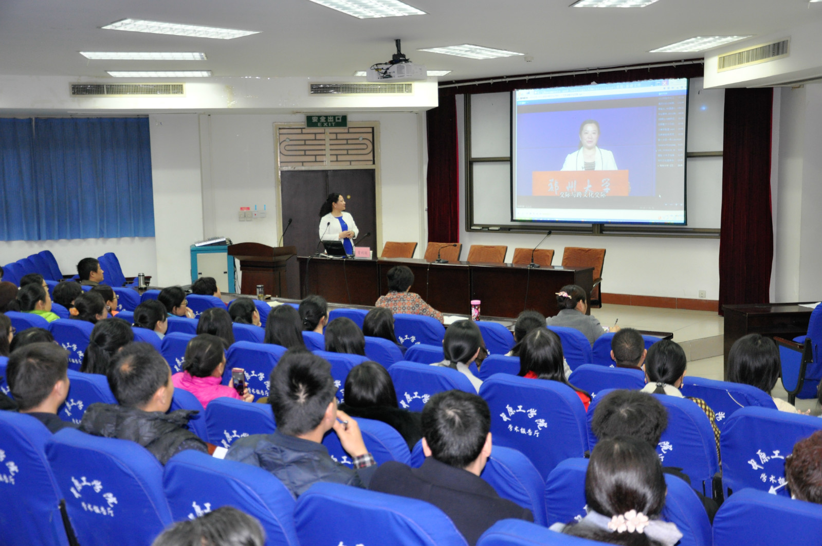 2017年3月10日,应中原工学院3003新葡官方网站邀请,郑州大学曾利娟副教授在中原工学院南校区4号楼311学术报告厅,为新葡官网3003新葡官方网站全体教师做了题为“《文化差异与跨文化交际》慕课建设经验分享”讲座。3003新葡官方网站院长郭万群教授主持并聆听了讲座。