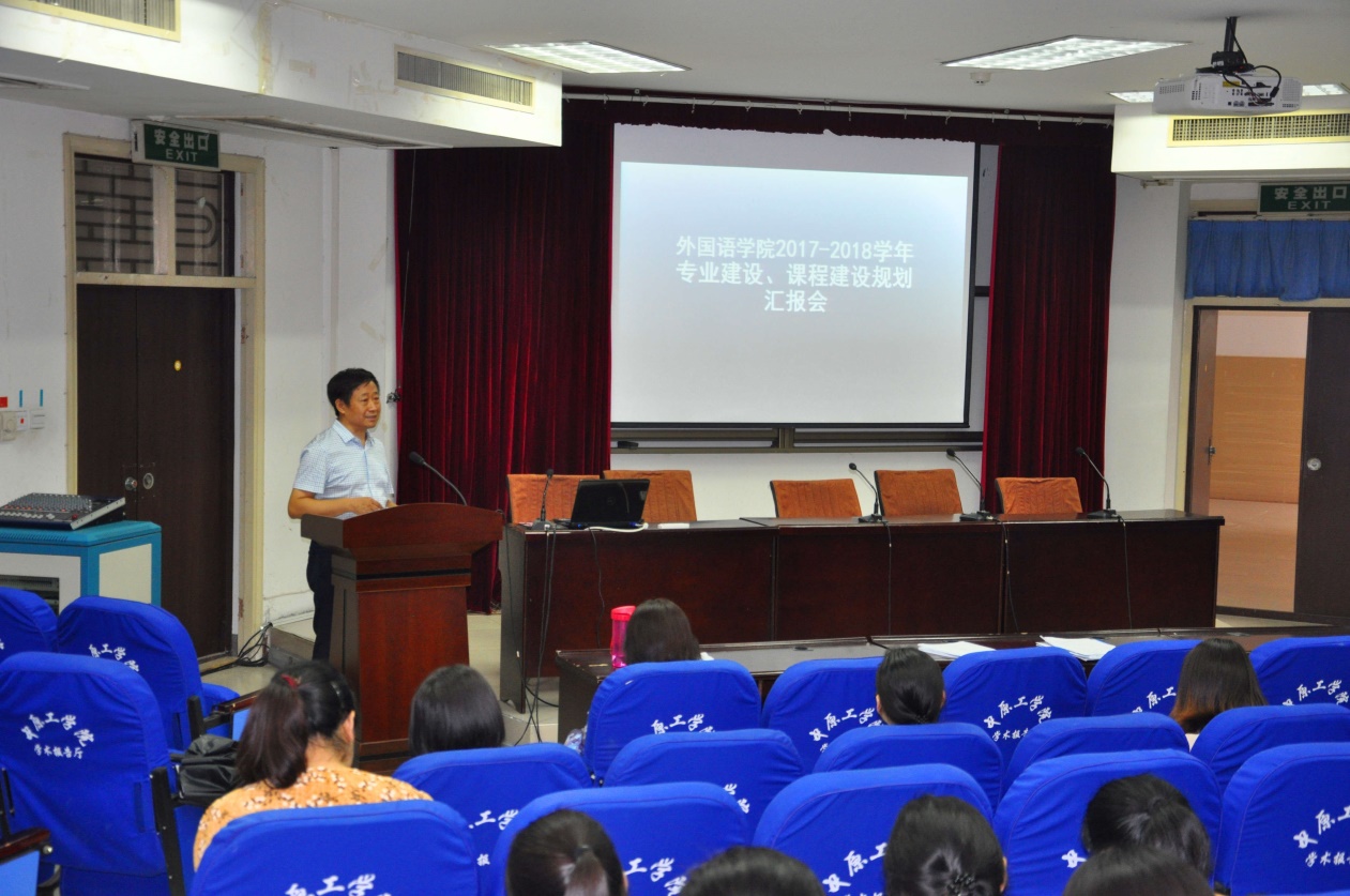 会上,各系部主要负责人首先总结了各自的发展现状及成果,然后分别从师资队伍建设、参与企业专家、建设目标、建设方案、进度安排和预期成果六个部分进行了汇报。日语系主任边冬梅强调,高质量的实习实践基地建设对培养学生非常重要和关键,目前日语系正积极与日本一家企业协商筹建新的实习实践基地。英语系主任郝玉娟表示,为切实提高英语专业学生的培养质量,以“新国标”为导向,多次召开教研室会议,并结合多位专家的意见,制定了新的培养目标和计划。接着,汉语国际教育专业的陈大为主任也作了汇报。陈主任提出,在学生的培养规划中,要加大学科竞赛,增强学生的国学相关知识。陈主任表示,新的培养规划有信心使学生在就业和考研方面再上一个新的台阶。随后,大学英语各部主任李向民、闫秋霞、王惠瑜和冀慧颖根据各自部门所负责全校不同专业、不同层次的学生,提出各自存在的症结,并就如何进一步做好课程建设提出了很多针对性建议和发展规划。最后,计算机辅助语言教学部及语言学习中心主任张海燕向大会介绍了新部门。计算机辅助语言教学部及语言学习中心服务于学院各个专业以及全校大学英语的教学与学习。张主任提到,该中心已组织完成四次大学英语四级模拟测试,并已设计出中原工学院大学英语自主学习现状分析问卷调查,并根据调查结果分析,紧密结合大学英语教学大纲,制定了大学英语自主学习任务。值得一提的是,为营造全校英语学习的氛围,该中心推出了“中工外语移动学习”微信公众平台。