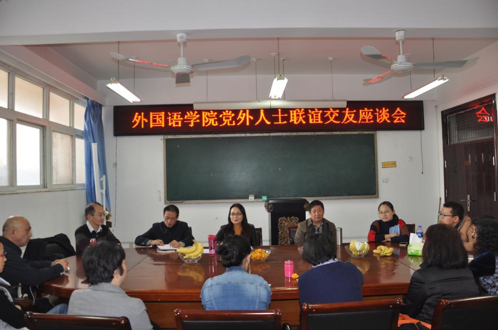 按照新葡官网统战部关于统战工作相关要求,外语学院党总支高度重视党外人士工作,先后通过党政联席会及总支委员会,学习和通报学校统战部相关文件精神,把统战工作作为总支重要内容来抓,积极关心党外人士的生活,积极征求党外人士的意见和建议,把党外高级知识人才纳入学院人才队伍建设的重要内容,畅通日常工作协商渠道。为进一步加强与党外人士的沟通协商,经总支会同意,于2017年11月7日下午2点至4点在11#214召开了民主党派及无党派人士联谊座谈会,会议由总支书记姚晓鸣主持,学院全体领导班子及各民主党派教师共计14人参加了座谈,整个座谈会气氛热烈,大家畅所欲言,谈认识,说经历,表达了在校党委领导下对学院领导的关心表示感谢和对学院快速发展表示欣慰之情。