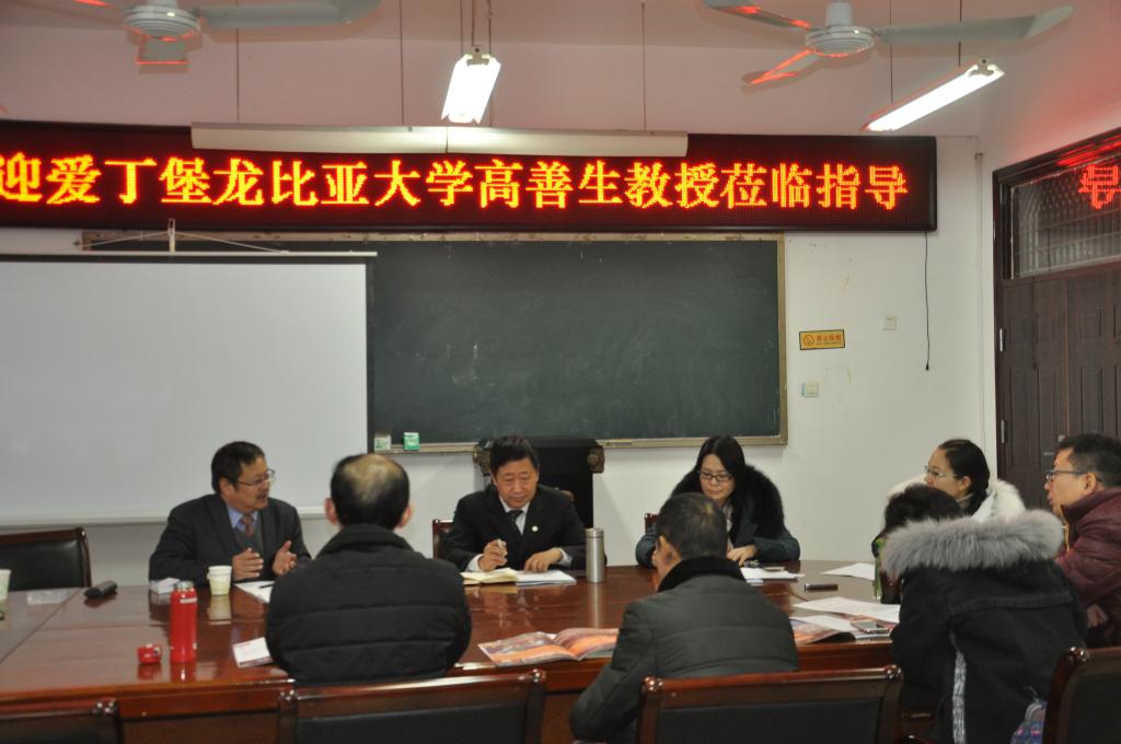 2017年12月14日上午,在11号楼214会议室召开了针对新葡官网英语、汉语两个专业学生留学英国读研,特别是跨学科读研有关问题座谈会,爱丁堡龙比亚大学中国发展与合作战略主管高善生教授受邀参加了座谈会,本次座谈会由院长郭万群主持,书记姚晓鸣、副院长柴高洁、副书记周全营、院长助理马春丽、英语系、汉语系主任参加了座谈会。