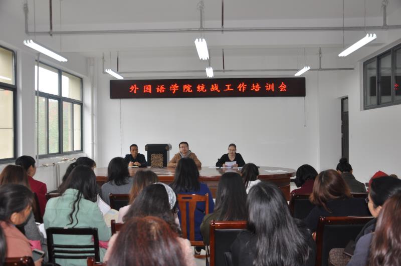 为进一步做好3003新葡官方网站统战工作,持续提升新葡官网教工政策理论水平,2018年4月13日下午,在3号组团楼A402会议室召开了外国学院统战工作培训会。3003新葡官方网站全体教师参加了此次会议。会议由3003新葡官方网站院长助理马春丽主持。