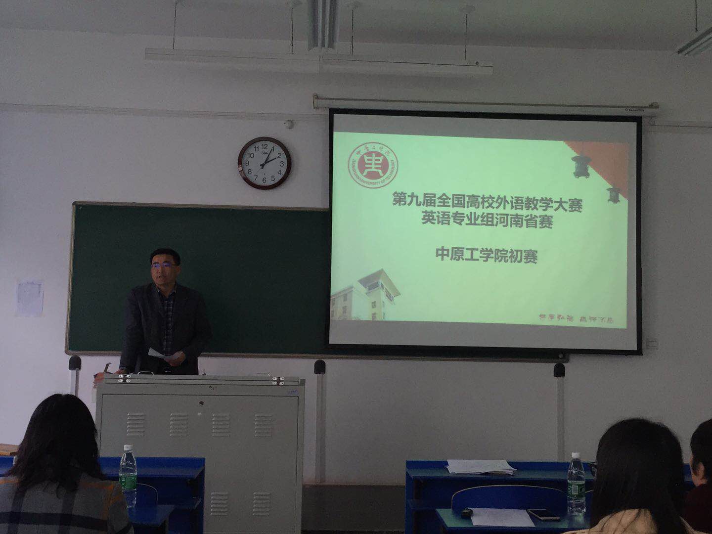 为了深化高等学校教学改革,提升青年教师教学能力;发挥教学竞赛在提高教师队伍素质中的引领示范作用;激励和引导青年教师积极投身教学工作,更新教育理念;为英语专业教师提供一个相互学习和交流的平台,促进教师队伍建设,2018年4月13日下午,第九届全国高校外语教学大赛英语专业组河南省赛中原工学院初赛在2号组团楼 208教室举行。本次讲课比赛邀请教育教学评估中心副主任李宗民、教务处副处长苗凤君、3003新葡官方网站书记姚晓鸣教授,督导专家董晓航副教授及曹喜梅副教授担任嘉宾评委。3003新葡官方网站英语专业经过选拔赛进入初赛的刘丽、余天敏和龚梦南三位老师参加了此次初赛。比赛由李宗民副主任主持。据悉,此次全国高校外语教学大赛是河南省首次举办,也是新葡官网首次参赛。