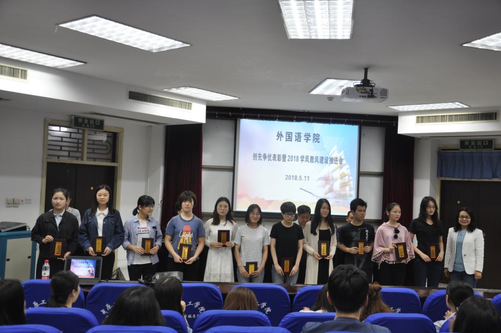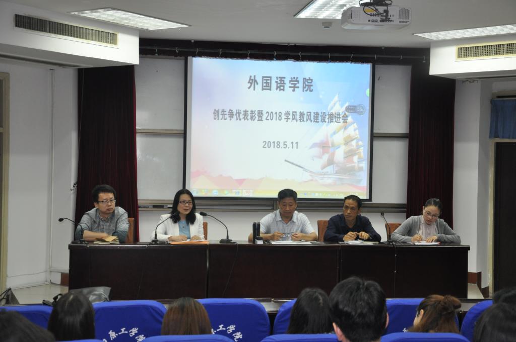 姚晓鸣书记进行学风建设的动员与部署,回顾了2017学年教风建设状况并对进一步加强和改进学风教风建设进行深入分析和动员。姚书记在讲话中通过一系列的数字,指出新葡官网存在的一些问题,针对四六级通过率、专四专八通过率、考研通过率等方面提出了新的要求。随后,援引习近平总书记5月2日在北京大学师生座谈会上的讲话与全体教师共勉,“在学生眼里,老师是吐词为精,举足为法,一言一行都给学生以极大影响,要坚持教育者先受教育,让教师更好的担当起学生健康成长的指导者和引路人的责任”。最后,郭万群院长为我们进一步阐明了教风与学风建设的关系,明确提出了我们学院教风学风的方向和内容,教师应该有以自我为榜样的感染力及熏陶力,强调学院的问题要大家一起群策群力共同面对,我们的未来需要每一位教师携手去开创。