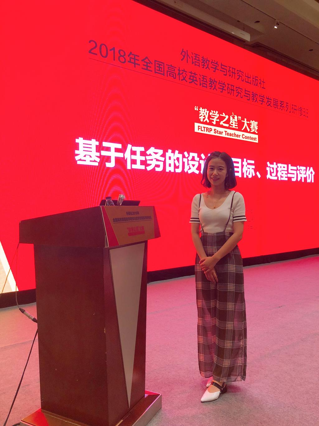 7月28日,2018年外研社“教学之星”英语专业全国大赛复赛在天津举行,新葡官网龚梦南老师在复赛第一轮、第二轮凭借扎实的教学功底和精心的赛前准备,获得季军。龚梦南老师精彩的表现获得了评委和在场同行的一致好评,为新葡官网外语教学工作赢得了荣誉。