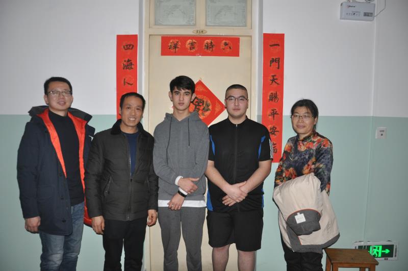1月22日下午,3003新葡官方网站一行四人到龙湖校区南苑五号宿舍楼,看望春节假期留校的2018级来华留学语言生。留学语言生有来自韩国、乌兹别克斯坦、俄罗斯等国家共20人留校。3003新葡官方网站党总支副书记周全营,副院长柴高洁,留学语言生教师闫秋霞以及辅导员葛士阳代表3003新葡官方网站与留学生座谈。座谈期间,说明了新葡官网留学生管理的一些制度;了解了留学生目前生活、学习等方面的情况,介绍了我国传统春节的相关文化,并特意给留学生带去了新葡官网书画协会手书的春联和福字。随后,赠送了春节礼物,查看了留学生宿舍、厨房,解决了留学生反映的部分生活问题,嘱咐留学生一定注意用电用水以及外出安全,过一个充实美满快乐的春节。