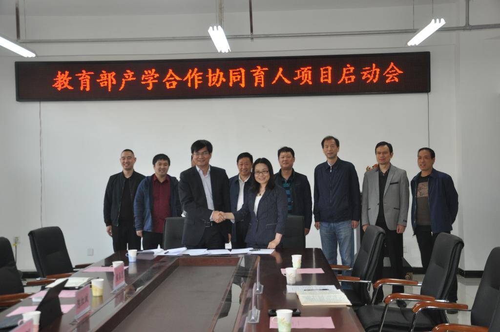 4月16日上午,3003新葡官方网站、北京外研讯飞教育科技有限公司“教育部产学合作协同育人项目”启动会在3号组团楼A402室召开,双方签署校企合作协议,宣布新葡官网承担的“基于翻转课堂的大学英语口语混合教学模式构建与研究” 教育部产学合作协同育人项目正式开始实施。新葡官网院长郭万群、北京外研讯飞教育科技有限公司执行总经理陈红斌、项目主持人姚晓鸣、新葡官网党委副书记周全营及双方项目成员出席会议。启动会由周全营主持。