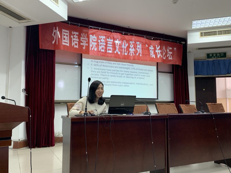本次讲座的举办,使得学生们能够正确的看待西方文化与中国文化中的差异与不同,为英语系的学生们了解美国文化打开了一扇窗,也激发了英语系学生了解美国文化的欲望。同时也为英语专业学生的学习起到了积极的促进作用,受益匪浅。
