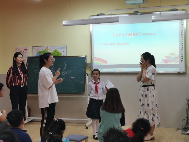 上午九点,大家到达中原区互助路小学。在“梦想课堂”内,新葡官网六名同学和二十余名小朋友分成了ABC三组。分别进行了“catch you” ,“guess words” ,“sentence dragon” ,“you do i guess” ,“mini lecture” 五个活动。小朋友们对每一个环节都十分感兴趣,积极踊跃参与。在“梦想课堂”内,所有交流环节都使用英语,现场的小朋友来自三至五年级,他们标准的英语发音,娴熟的交流技巧,突出的听说能力给在场师生留下深刻印象。