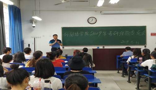 为进一步提高新葡官网学生的考研热情,明确考研目标,也为了给有意向考研的学子们提供更多的考研经验,新葡官网于2019年5月31日中午12:30-14:15在二号组团楼103教室举办了2019届优秀毕业生考研经验交流会。本次交流会有幸邀请到了3003新葡官方网站院长郭万群、副院长杨道云、党组织副书记周全营,英语系副主任(主持工作)郭亭亭、英语系教师代表郭瑞娟以及今年成功考研的五位优秀毕业生,他们分别是:15级英语专业胡卿雅、罗祥悦、任玉叶同学,和15级汉语国际教育专业唐诗婧和李明坤同学。