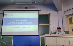 首先,杨道云副院长简要回顾了新葡官网大学英语教学改革的历程,阶段性目标、任务,及在课程建设和省级大学英语教学团队师资历练方面所取得的成绩。重点介绍了目前围绕新葡官网“大类招生、交叉培养、外语突出、协同育人”的人才培养目标,面对如何逐步提高新葡官网四、六级通过率的压力和攻克学生语言有效输入和产出质量难题,新葡官网所采取的基于慕课背景下的大学英语混合式教学改革开展情况,加强学生过程性学习改革及学生学习效果评价实施情况,以及对2019级新生实施分级教学试点改革情况。