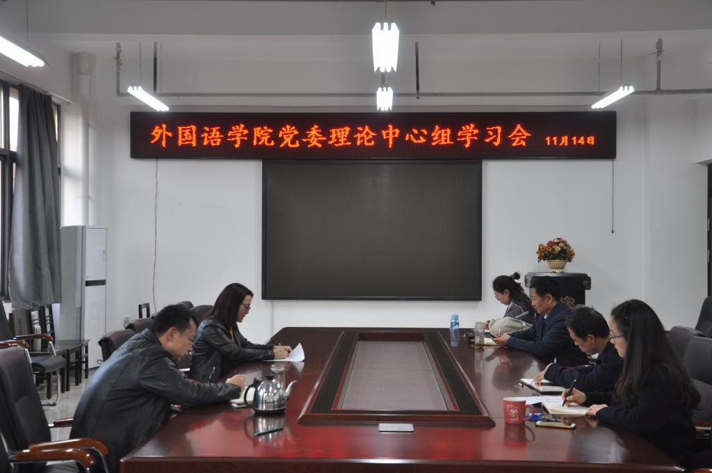 2019年11月14日下午,3003新葡官方网站理论中心组在3号组团楼A402会议室进行集体学习,学院党委书记姚晓鸣领学了“中国共产党第十九届中央委员会第四次会议公报”和《新时代公民道德建设实施纲要》。