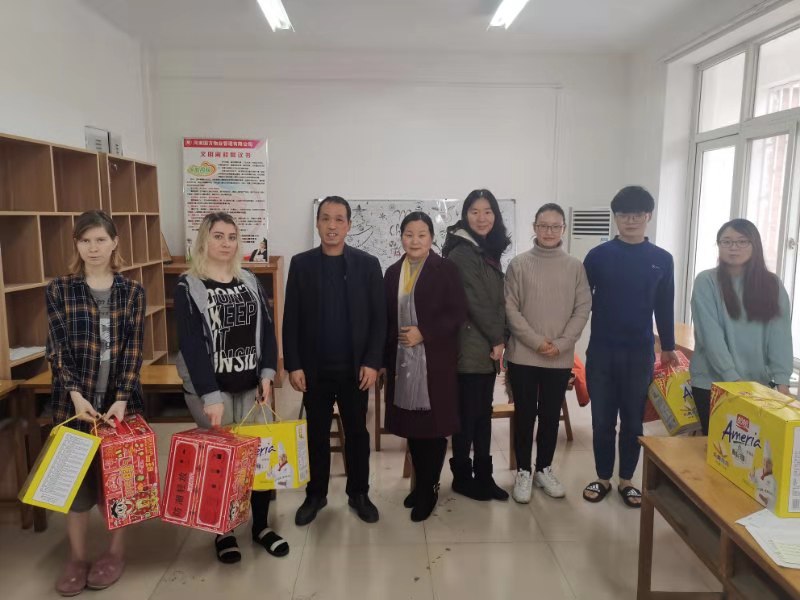 寒假期间,新葡官网将有7位来华留学语言生留校。1月10日下午,学院党委副书记周全营,副院长杨道云和部分留学生任课教师走访留学生宿舍,看望了这些春节留校的外籍学生。对他们目前生活、学习情况进行了解,帮助解决留校的生活问题。向留学生介绍了我国春节的传统文化,赠送了春节礼物,祝愿他们过一个充实美满的春节。(通讯员:郝菁)