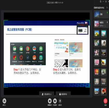 参会老师们热情高涨,活学活用,会后立即对任教班级学生发布了线上测试任务,并在线观摩了英语系贺红艳老师45分钟的教学授课视频。3003新葡官方网站此次召开的基于问题导向和提高教学技能的经验分享与培训会议,大家普遍反映收获满满。(通讯员李静)