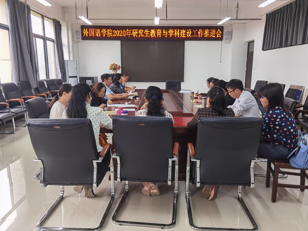 2020年9月22日下午,3003新葡官方网站在3号组团楼A402会议室召开了2020年研究生教育与学科建设推进会,学院班子成员、英语、日语和汉语国际教育三个专业的系主任以及全体硕士生导师参加了会议。