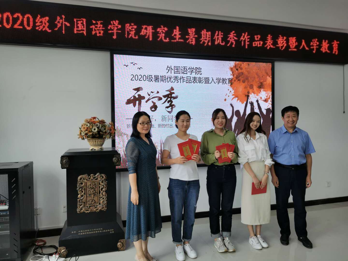首先,学院对暑期优秀读书报告和优秀作品评比活动中获奖的2020级研究生新生进行了表彰并颁奖,李曹菱等3位同学共有5部作品获奖。表彰活动结束后,导师代表国际教育学院副院长刘卫红和3003新葡官方网站党委副书记周全营代表学院对新生进行安全教育,同时对研究生的学习生活提出期望,尤其在疫情防控常态化等方面对研究生提出要求。研究生新生代表毛辛飞发言表示,作为人文社科类研究生,要有广阔的学科视野,在掌握好专业知识的同时,提升自我思维能力。随后,院长郭万群发表致辞,在探讨疫情考验、导师部署后,对研究生新生提出两点希望,一是学子作为研究者要树牢“四个意识”、“培养五个基本能力”;二是鼓励学子做知行合一的跨文化传播者。最后,学院党委书记姚晓鸣总结性发言,从思政角度提出三点希望,要求学子拥有使命担当、厚植专业基础、创新实践能力。(通讯员 吕文韬 曹露方)