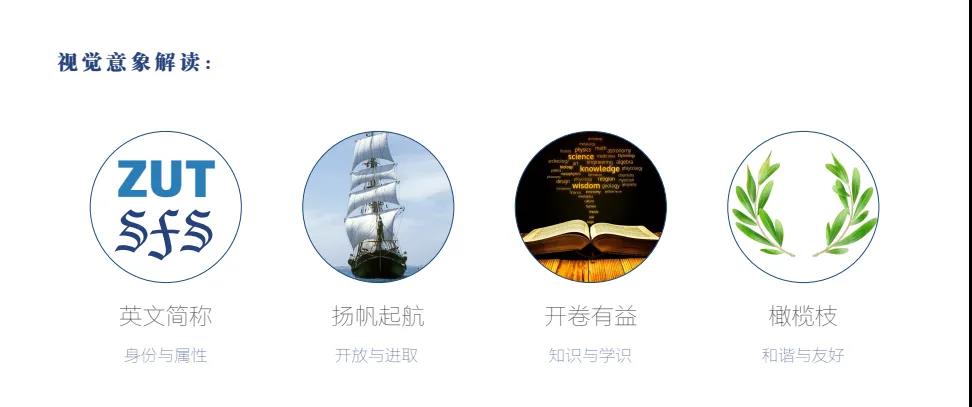 中原工学院3003新葡官方网站院徽以学院英译缩写“SFS”为创意出发点,以平铺展开的书本及生机盎然的橄榄枝为主体构型,“书本”象征对知识与真理的探索,“橄榄枝”象征对和平与友谊的希冀。高高扬起的“F”造型,既是Foreign的首字母,又有自由(Freedom)、友好(Friendship)的寓意,显示出一种乘风破浪、勇毅前行的豪迈气象;其一左一右的两个“S”,既是School和Studies的首字母,又有启航(sailing)、求索(seeking)的寓意,展示出一种团结协作、砥砺进取的工作精神;结合下部的书本造型,共同构成扬帆起航的青春之轮;图形下部的书本、两边展开的橄榄枝与上部中原工学院的英译缩写“ZUT”,共同组成圆满的主体造型,展现了学院生机勃勃的发展状态。