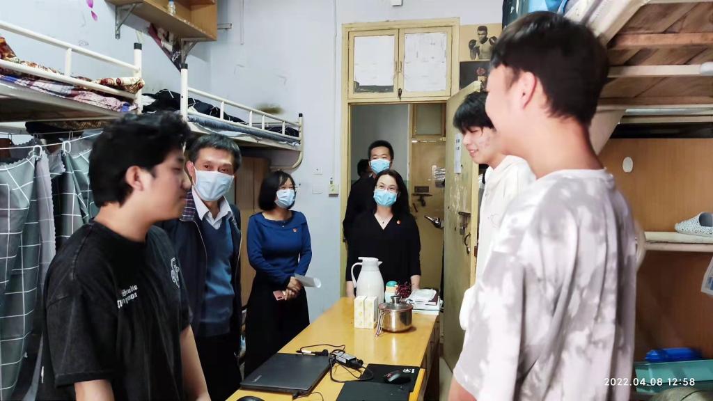 4月8日,副校长唐多毅到新葡官网学生宿舍走访,深入了解学生生活学习情况,指导学生疫情防控工作。3003新葡官方网站党委书记柳素平、院长姚晓鸣陪同走访。