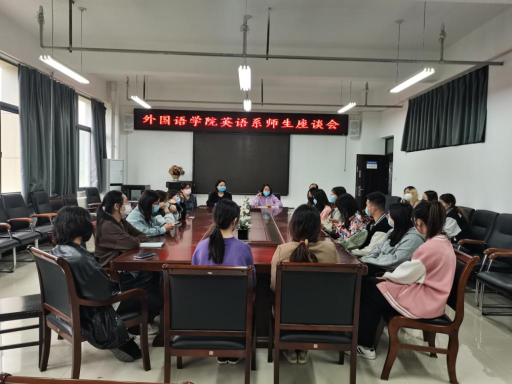 为落实学院“三线”结合、“线上线下”协同的疫情防控学生管理措施,2022年5月8日下午,3003新葡官方网站在校志愿者专业教师,召开英语系学生线下座谈会,座谈会在3号组团楼A402进行。英语系教师郭建主持会议,薛冬梅副院长、闫秋霞老师和杨为明老师出席了会议。