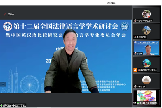 2022年11月26至27日,“第十二届全国法律语言学研讨会暨中国英汉语比较研究会法律语言学专业委员会年会”于线上成功举办。本次会议由中国英汉语比较研究会法律语言学专业委员会主办,由广东外语外贸大学承办。会议主题为“新时代中国法律语言学研究新方向——国际化、本土化、专业化”,来自国内外各大高校与司法实践部门的150余名专家学者出席了本次会议。