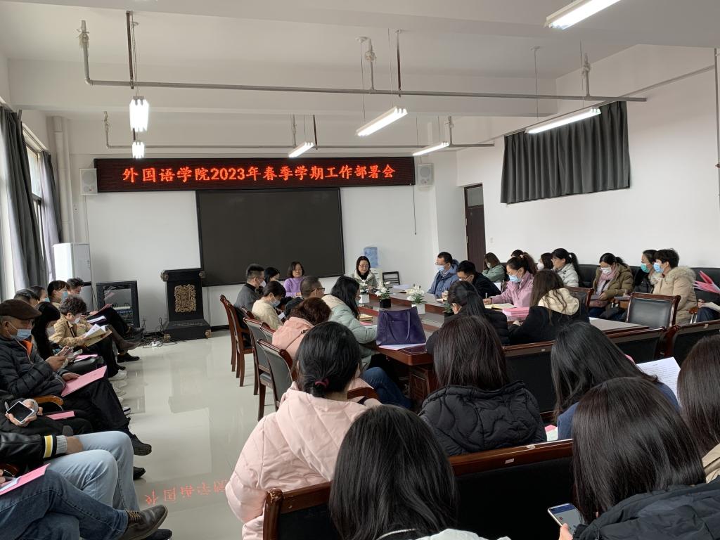 2月21日下午,新葡官网在龙湖校区3号组团楼A402会议室召开春季学期工作会议,总结寒假业绩,安排部署新学期工作。学院党委书记柳素平主持会议,院长姚晓鸣安排部署工作。学院全体教职员工参加会议。