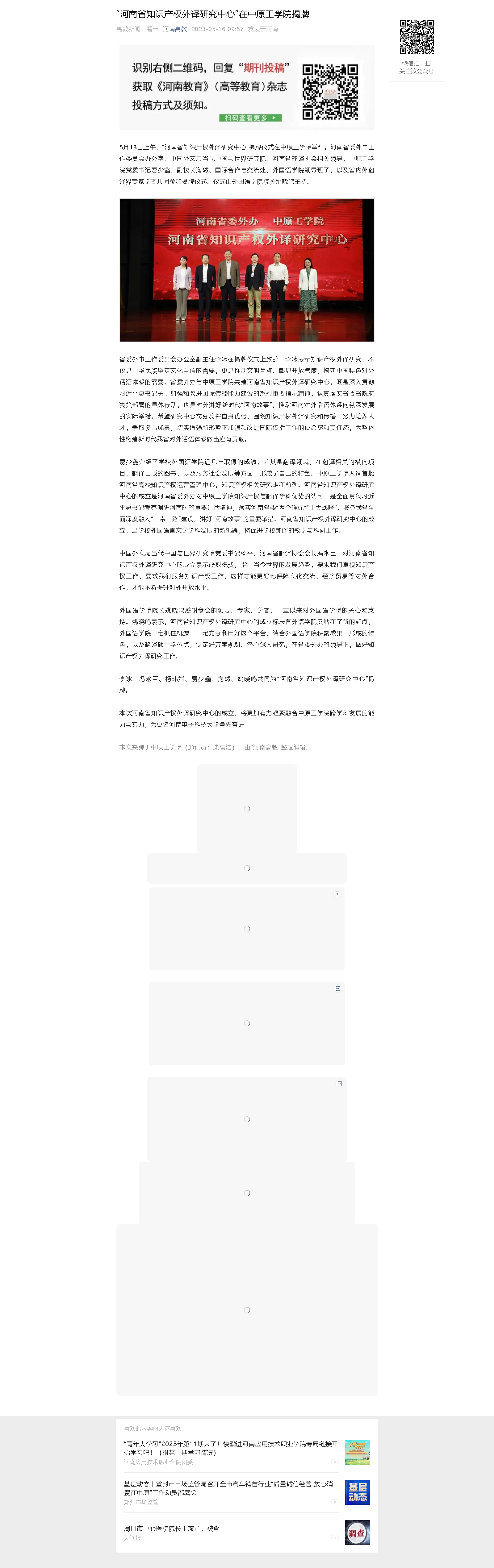 本次河南省知识产权外译研究中心的成立,将更加有力凝聚融合中原工学院跨学科发展的能力与实力,为更名河南电子科技大学争先奋进。(通讯员:柴高洁)