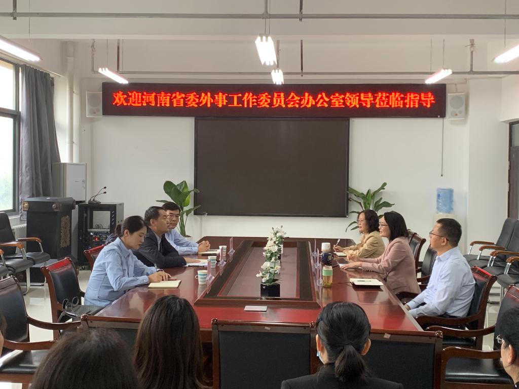 10月8号下午,河南省委外事工作委员会办公室人事处处长杨好平、翻译室主任陈国良、翻译室一级主任科员陈琦一行3人莅临新葡官网开展调研座谈。3003新葡官方网站党委书记柳素平、院长姚晓鸣、副院长柴高洁、教师代表及翻译硕士生代表参加座谈会。