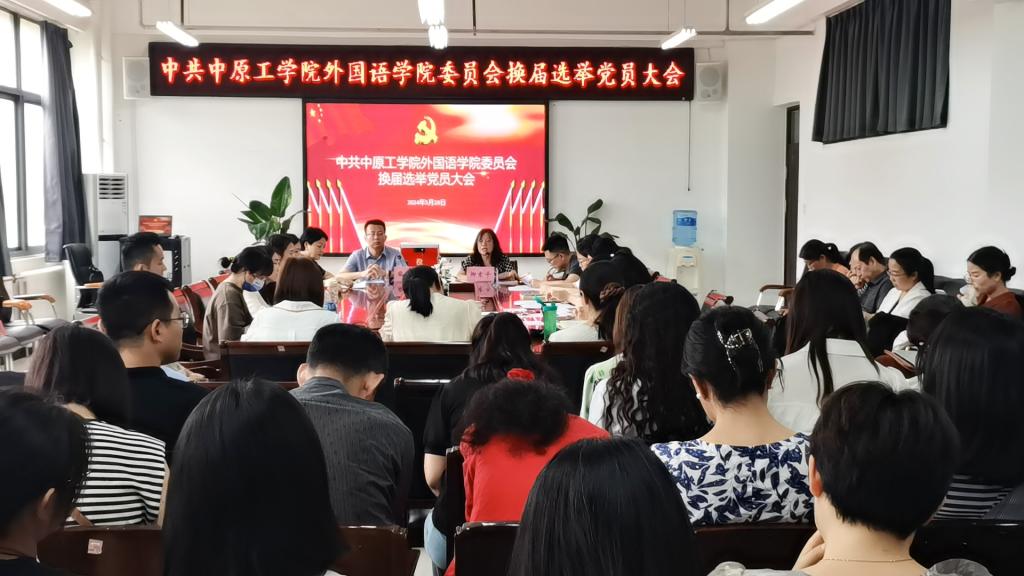 大会伊始,全体起立奏唱国歌,接着,学院上一届党委书记柳素平作了题为《打造语言类+人工智能专业优势为培育新时代国际化人才而奋斗》的工作报告,回顾总结了上一届党委执行党的路线、方针、政策和上级党组织决议情况、完成各项任务情况和取得的成绩,并从加强党的全面领导和党的建设、推动本科教育教学内涵提升、学科建设与研究生教育上新台阶、建强德业兼修的师资队伍、深化国际合作与交流、促进学生全面发展等七个方面,提出了今后工作的目标任务和思路举措。报告号召全院师生党员把学习贯彻习近平新时代中国特色社会主义思想不断引向深入,将其转化为落实立德树人根本任务的强劲动力;报告强调要全面加强党的建设、全面深化改革、全面推进高质量发展,确保我们党始终是引领学院前行的坚强核心;报告要求,全院上下要借高水平筹建河南电子科技大学的大好时机,凝心聚力,锐意进取,守正创新,努力打造语言类+人工智能专业优势,为培育新时代国际化人才而不懈奋斗。