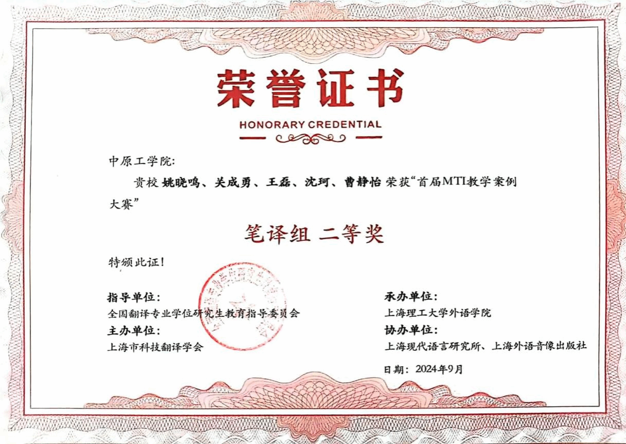 首届MTI教学案例大赛由全国翻译专业学位研究生教育指导委员会指导,上海市科技翻译协会主办,上海理工大学外语学院承办,旨在丰富MTI教学的多样性,汇聚不同高校的翻译硕士专业在MTI教学过程中所积累的聪明才智,同时为各类学校的MTI课程提供具有实践指导意义的教学案例。新葡官网MTI师生团队依托教育部学位与研究生教育发展中心主题案例《多语种数据库赋能中国地理标志品牌走向国际》,以“讲好中国地标故事——‘汝瓷’英译教学案例”为题,充分运用大语言模型,提炼汝瓷文化外译典型素材,创作MTI教学案例,在全国116支参赛队伍中脱颖而出,获笔译组二等奖。案例入选上海外语音像出版社《数字化教学案例作品集》,将集结出版。