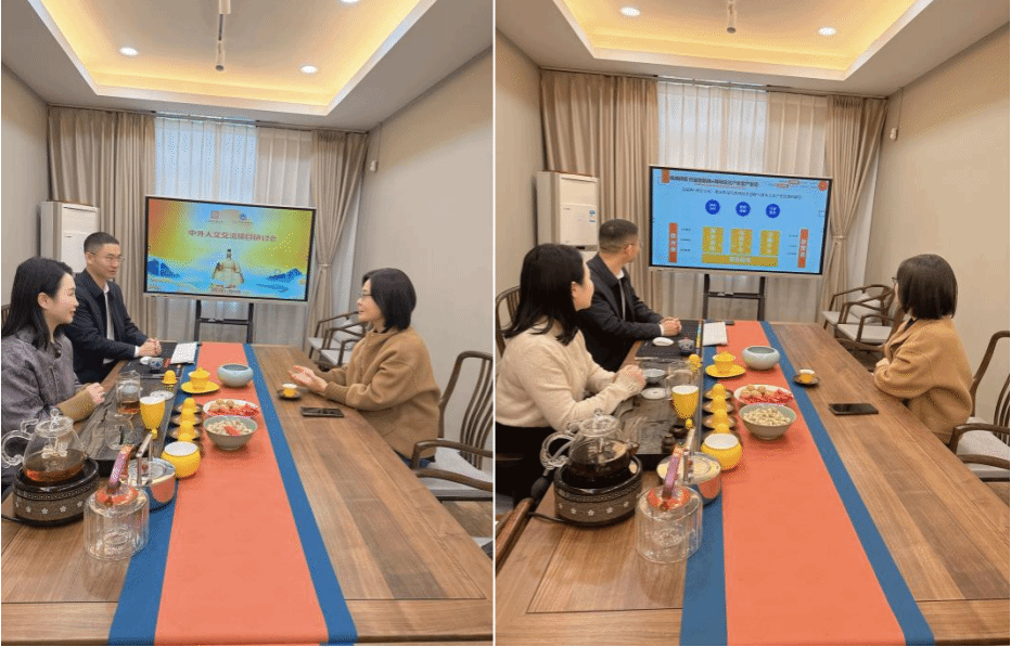交流会上,姚晓鸣介绍了学院的基本情况,对学院的专业建设、人才培养、校企合作、学生就业等情况进行了汇报。英国伦敦Neptune Investments公司联合创始人MaggieMa介绍了公司在海外拓展的具体情况、业务范围和其在英国伦敦华人社区以及国际上的影响力。黄帝故里基金会常务副会长牛凤梧介绍了其以“文化产业化,产业文化化”为主题的电商服务和文化赋能等的工作概况,以及文创产业发展情况。与会人员围绕国学教育海外传播产业链的合作模式和切入点深入探讨并交换意见。
