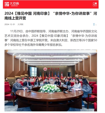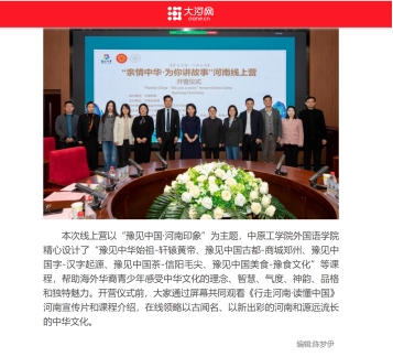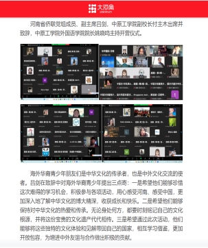 近日,由中国侨联指导,河南省侨联主办、河南省华侨国际文化艺术交流协会承办,中原工学院、轩辕黄帝文化书院联合承办,郑州市侨联等单位协办的2024【豫见中国·印象河南】“亲情中华·为你讲故事”河南线上营在新葡官网开营。该活动受到中新网河南、顶端河南、河南信息广播、河南日报客户端、大河网等多家媒体转载报道,点击量20余万,极大地提升了新葡官网的社会影响力和美誉度。