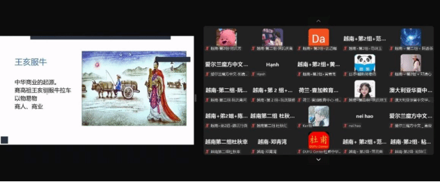 彭琰老师以“豫见中华始祖:轩辕黄帝”开启文化之旅。她运用海量生动的图片与视频,将轩辕黄帝的传奇经历徐徐展开,把黄帝的伟大功绩和对中华民族的深远意义一一呈现。趣味问答环节中,海外华裔青少年们踊跃参与,好奇心被充分点燃,对中华始祖文化的敬意油然而生。