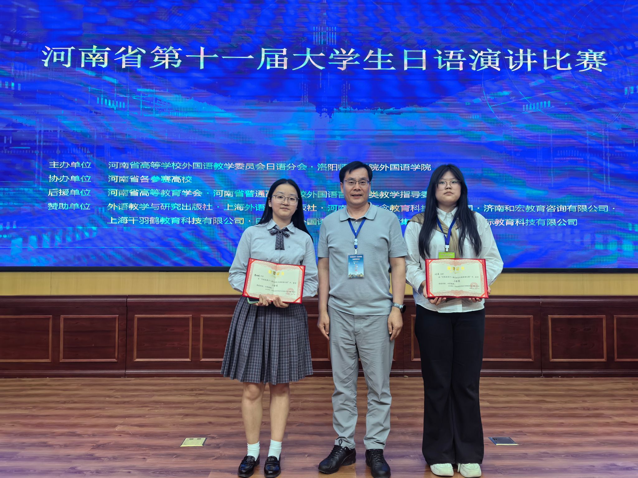 新葡官网日语系王学鹏老师带领曹雨晴、刘爽两位同学参加了比赛。经过现场激烈角逐,两位同学均获得了二等奖。