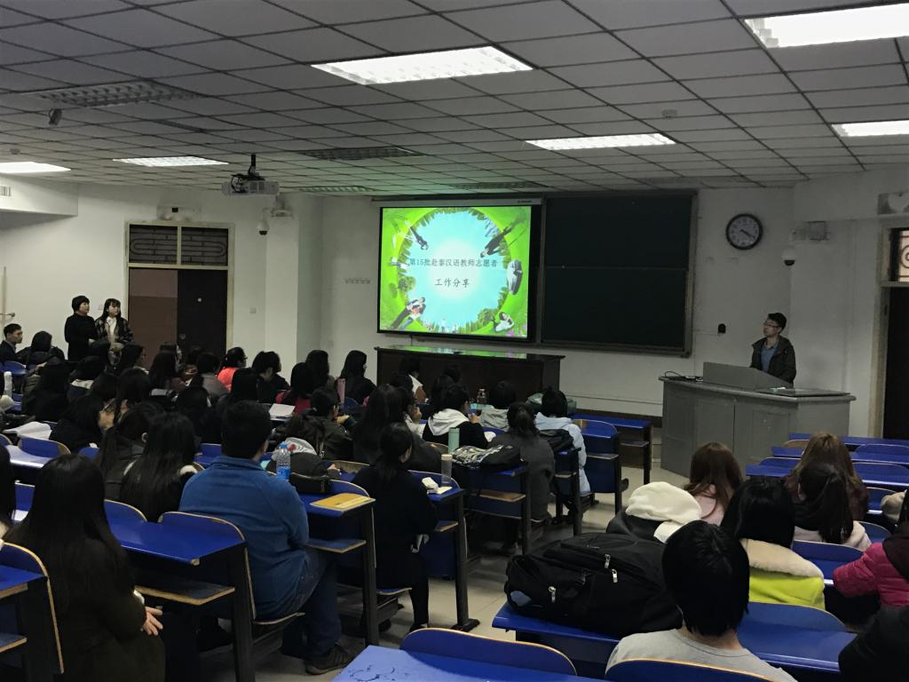 3月15日16时,外语学院在4号教学楼201教室举办“汉语教师志愿者经验分享交流会”,由刚从泰国归来的3名志愿者做专题讲座,分享海外任教经历。