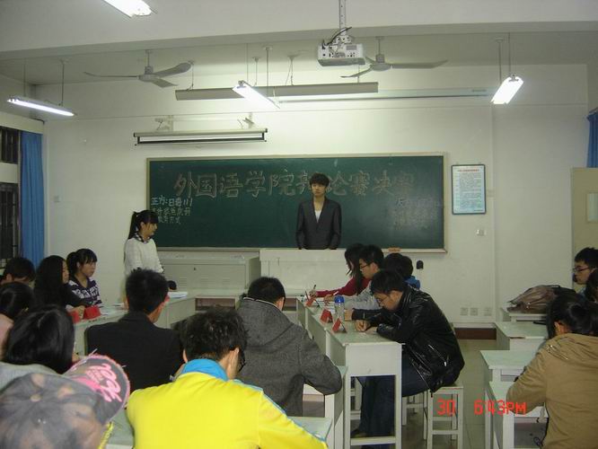 2012年10月31日晚六点三十分,由新葡官网学习部举办的3003新葡官方网站辩论赛在11号楼308,312,317举行。本次辩论赛决赛面向11、12级同学,共分三场举行。