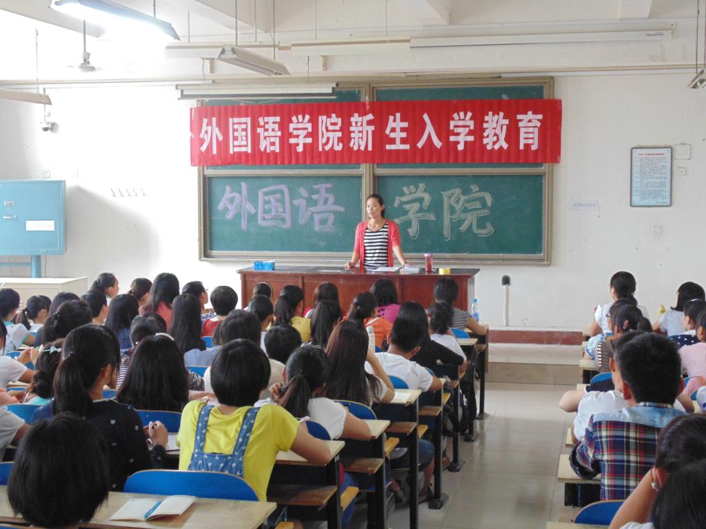 在入学教育活动中,郭万群院长以亲身体会,谈到对外语的不解情缘,用现身说法,讲出外语对人生的重要影响。郭院长还与全体新生进行了热情洋溢的互动,并希望来自天南海北的学子将来多为国家做出贡献。