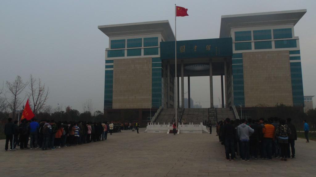2014年11月24日早上7点10分,中原工学院3003新葡官方网站在宏德广场前举行了庄严的升旗仪式。新葡官网师生精神饱满,随着国歌的响起,五星红旗迎风飞扬。随着国歌的响起,新葡官网国旗班的旗手们护送着红旗入场举行升旗仪式。